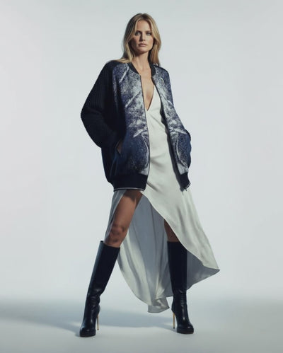 Knitted from GOTS-certified organic cotton, it wraps you in comfort while standing for something greater. Its oversized silhouette flows like ocean currents — free, unbound, quietly powerful. Designed for all genders, it honors the whale: a gentle giant, a keeper of deep wisdom, a voice for balance in the wild.